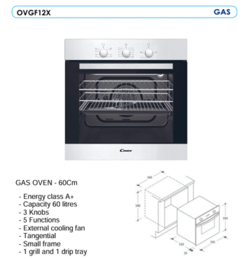 Brand: CANDYOVGF12X | 60CM Built In Gas Single Oven