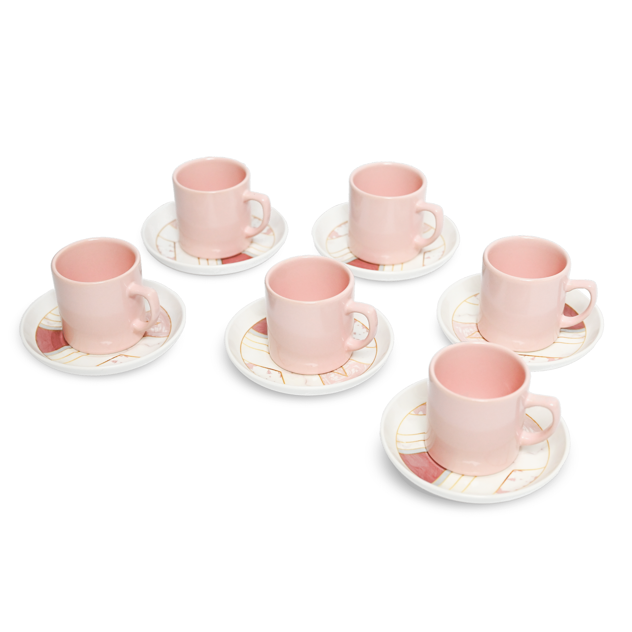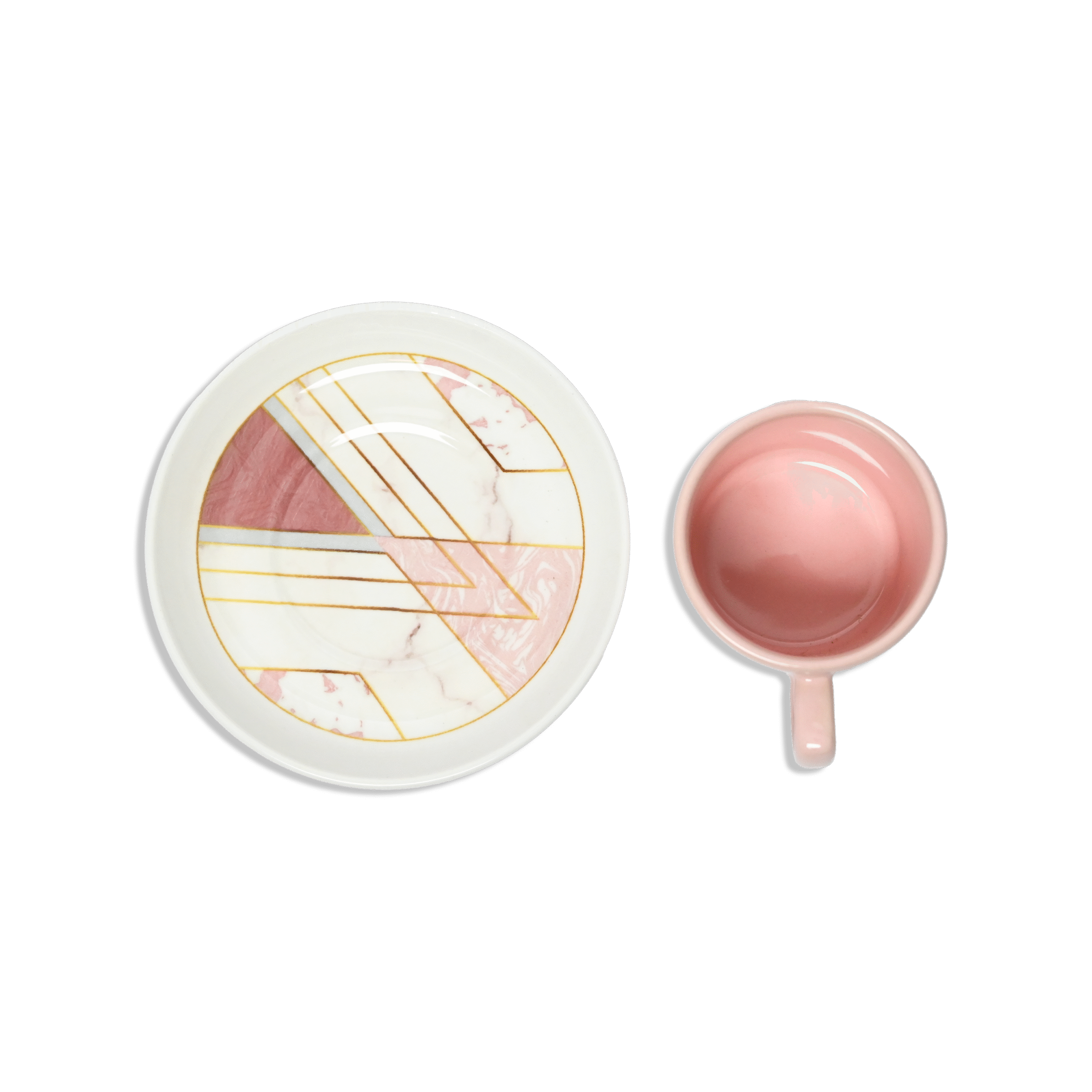 Serve your tea or coffee in style with this Pink Ceramic Cup & Saucer Set. Featuring elegant geometric saucers, this 12-piece set adds a modern and luxurious touch to your table.