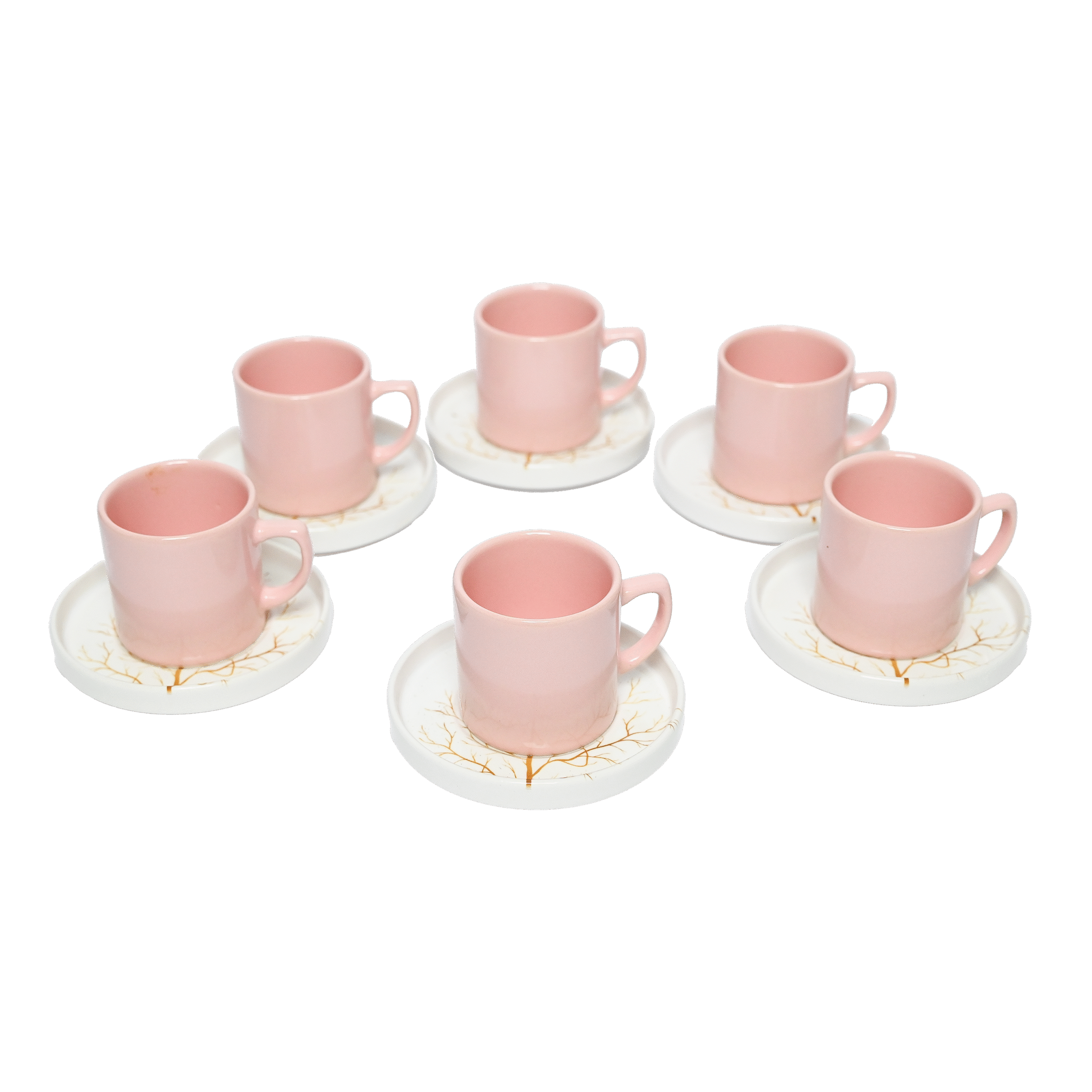 12 Pcs Set | Ceramic Tea & Coffee Cup with Gold Tree Saucer | Pink