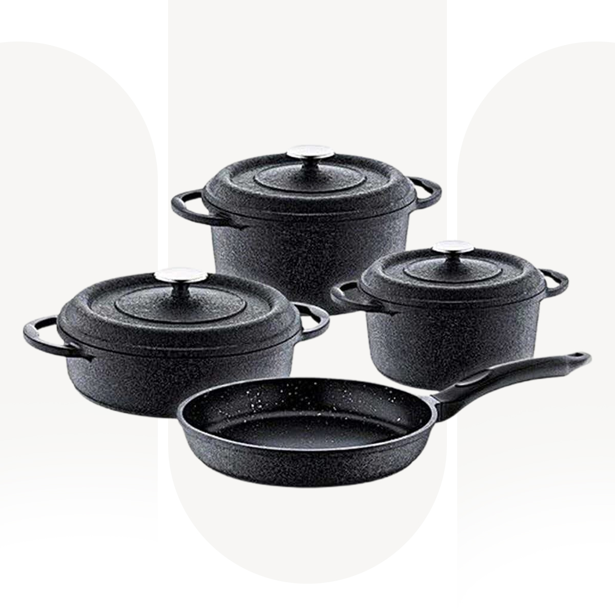 Upgrade your kitchen with the OMS 9-Piece Granitec Cookware Set. Made in Turkey, this durable set includes 4 casseroles with lids and aย frying pan, featuring a premium Granitec non-stick coating for healthy cooking and effortless cleaning.