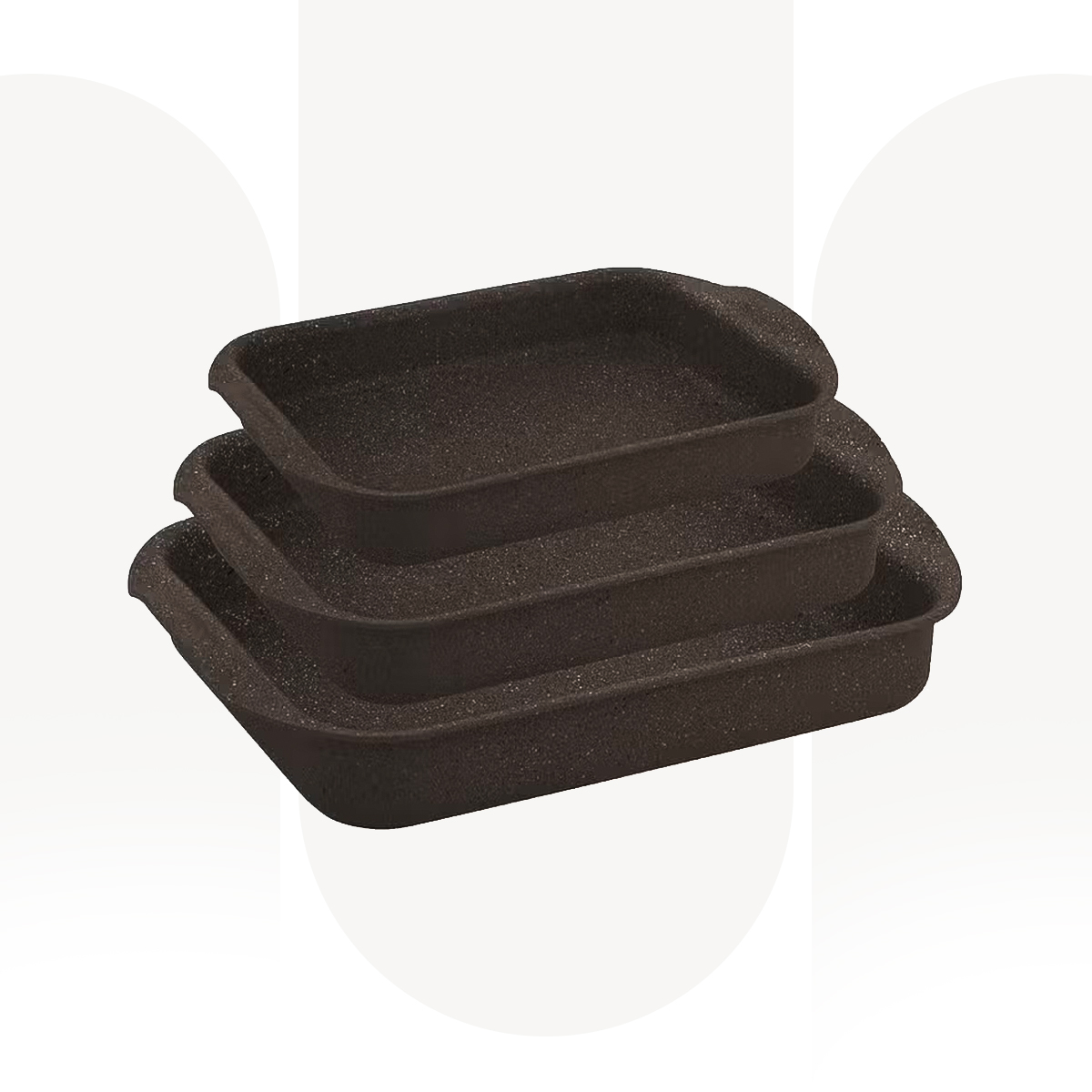 3931 | 3 PCS Granite Rectangular Baking Trays | Black