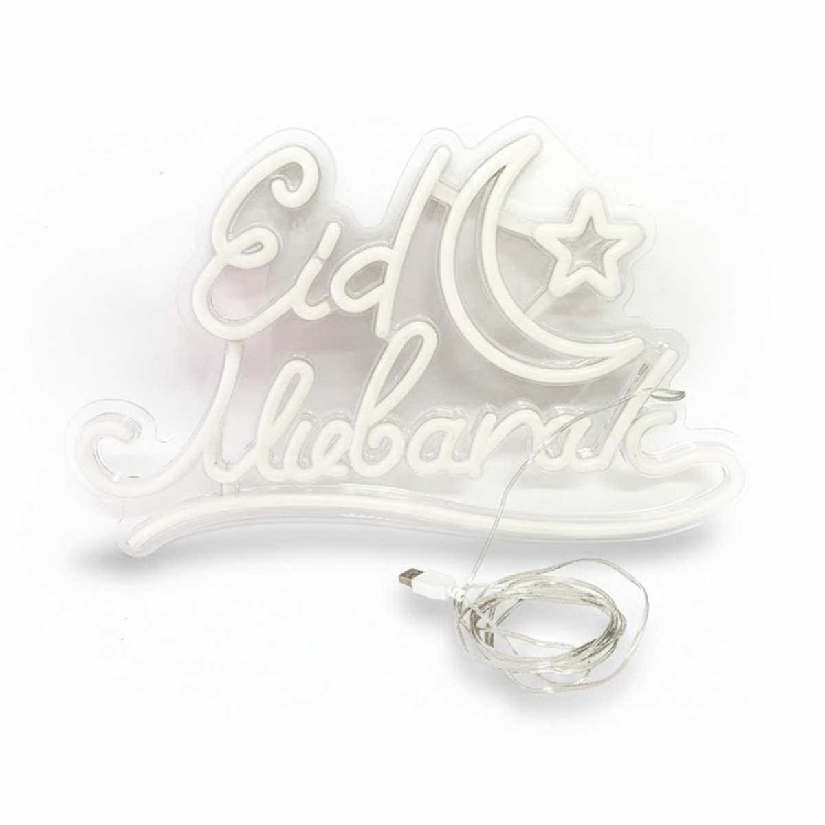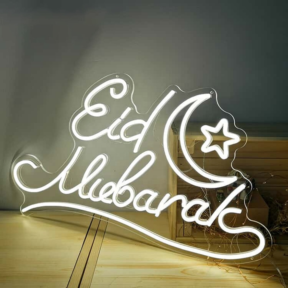 Create a festive and elegant ambiance with the 3D LED Acrylic Eid Mubarak Neon Decorative Light. Featuring beautiful Islamic lettering with a crescent and star design, this warm-glow LED sign is ideal for Ramadan and Eid home decoration.