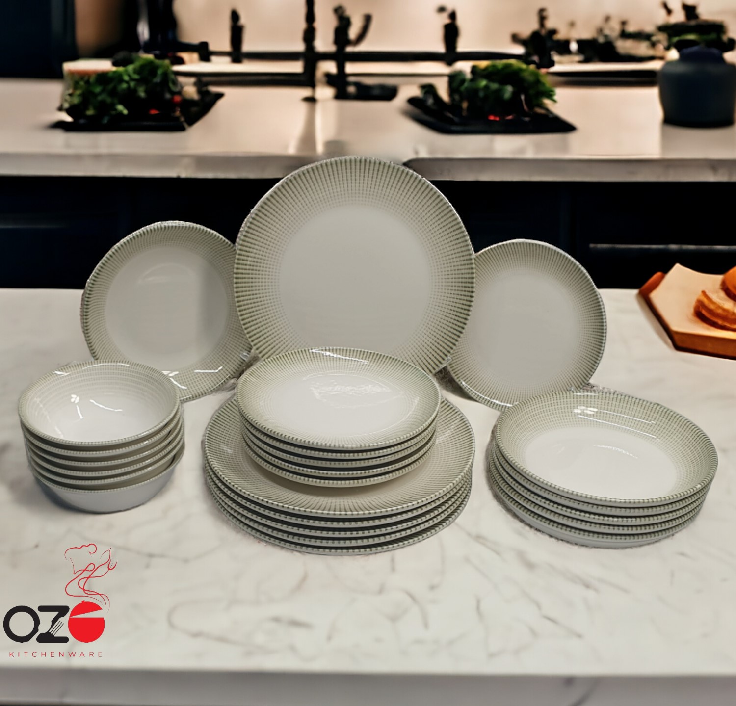 Elevate your dining experience with this elegant 24 Pcs Porcelain Dinner Set, beautifully crafted in Turkey. Designed for both everyday use and special occasions, it combines timeless style with lasting durability.