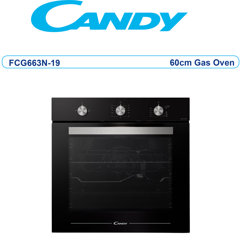 Manufactured in Italy, the Candy FCG663N19 full gas oven reflects high build quality and attention to detail. It offers reliable performance, practical features, and durable construction, making it a smart choice for kitchens that value efficiency, safety, and classic gas cooking.