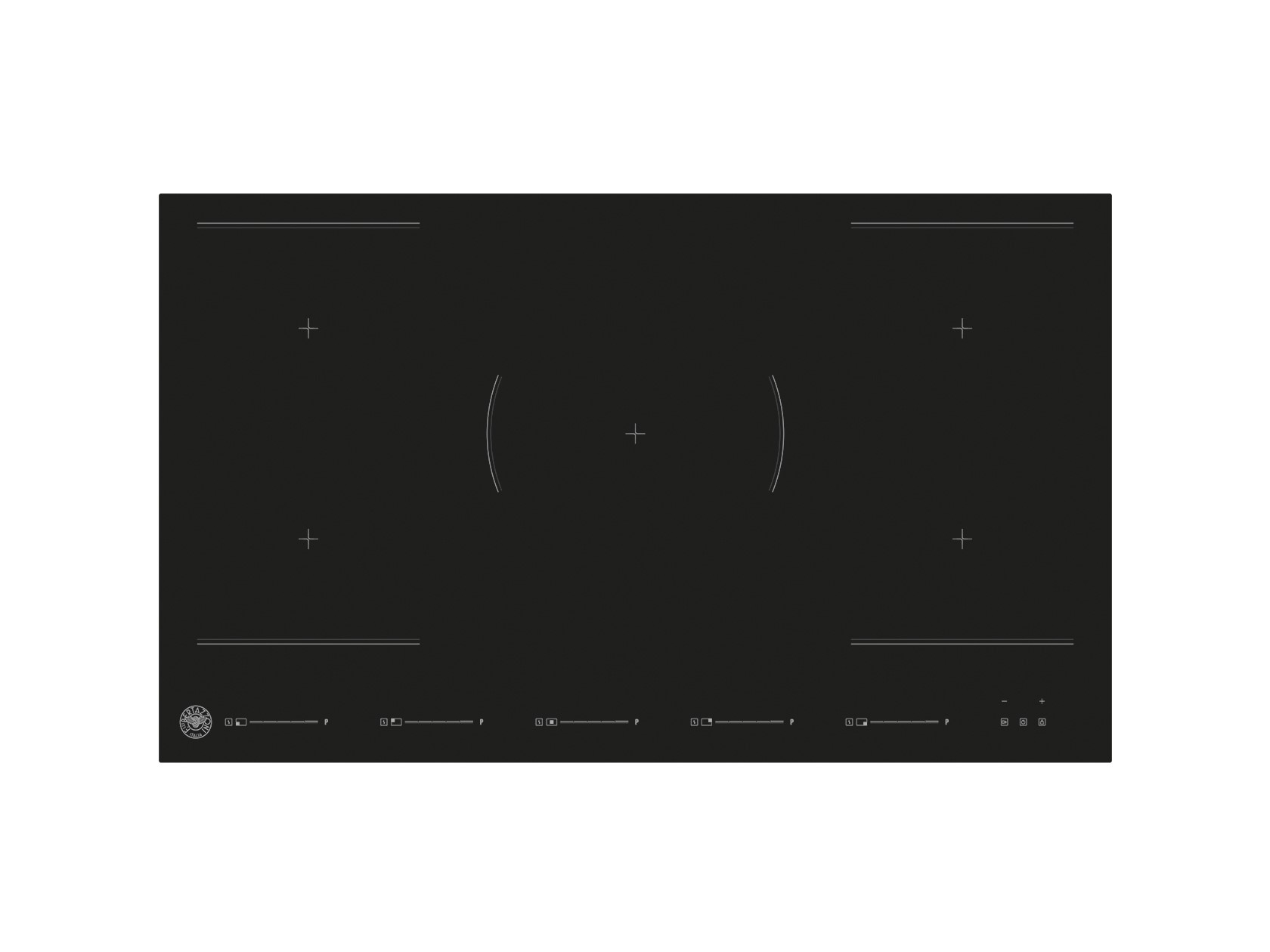 Bertazzoni 90cm built-in induction hob with 5 cooking zones, 9 power levels, and booster function. Features Multi Slider controls, Multizone for large cookware, and precise Melting, Keep Warm, and Boiling functions for effortless cooking control.