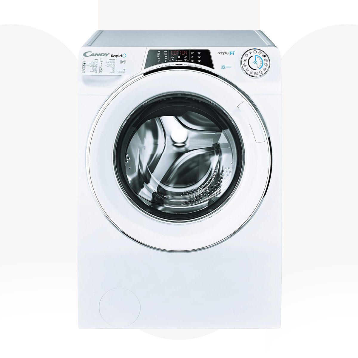 The Candy Rapido 9KG Washing Machine RO1496DWHC7/1-19 combines efficiency, speed, and smart technology. With a 1600 rpm spin, Steam function, Mix Power System, and Wi-Fi + Bluetooth connectivity, it ensures optimal cleaning for all fabrics. Rated A+++ -40%, it saves energy while the 6-digit display provides easy control for every cycle.