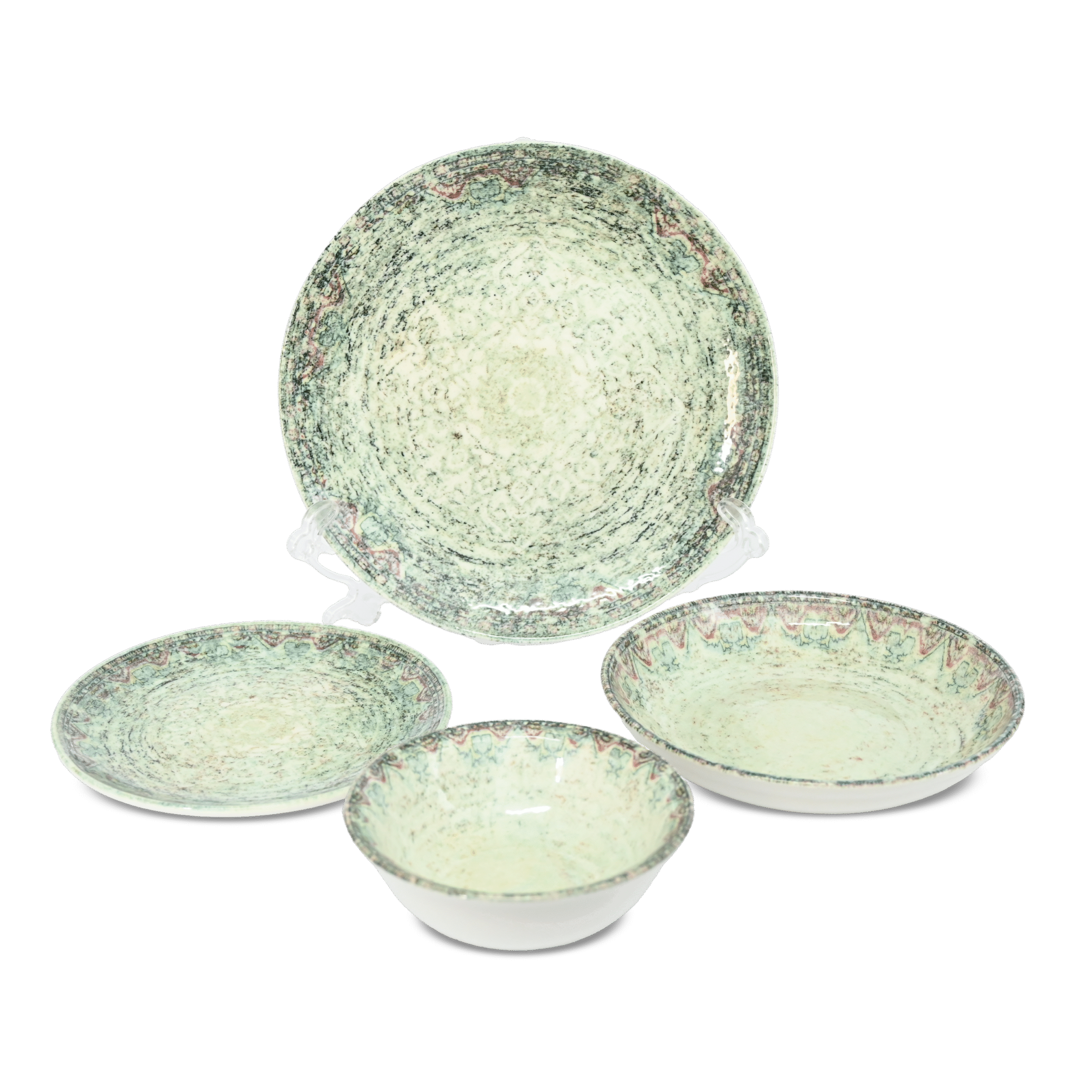 Add an artistic touch to your dining table with this elegant vintage-pattern dinnerware set. Featuring a unique stone-effect green finish with delicate traditional motifs, this set is perfect for everyday meals and special gatherings.