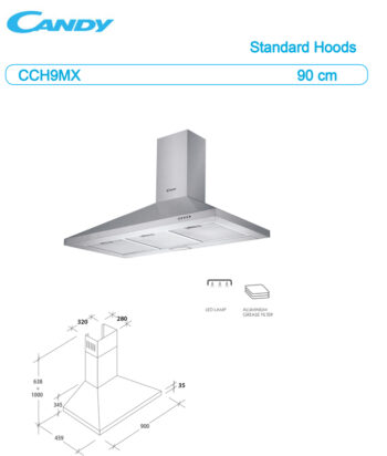 Brand: CANDYCSD9MXGG | 90 Cm Built-In Wall-Mounted Standard Hood